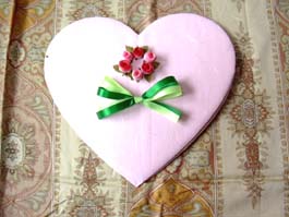 今回はハートの色紙をお花とリボンでアレンジをし、中に皆様からのメッセージを書かせていただきました。